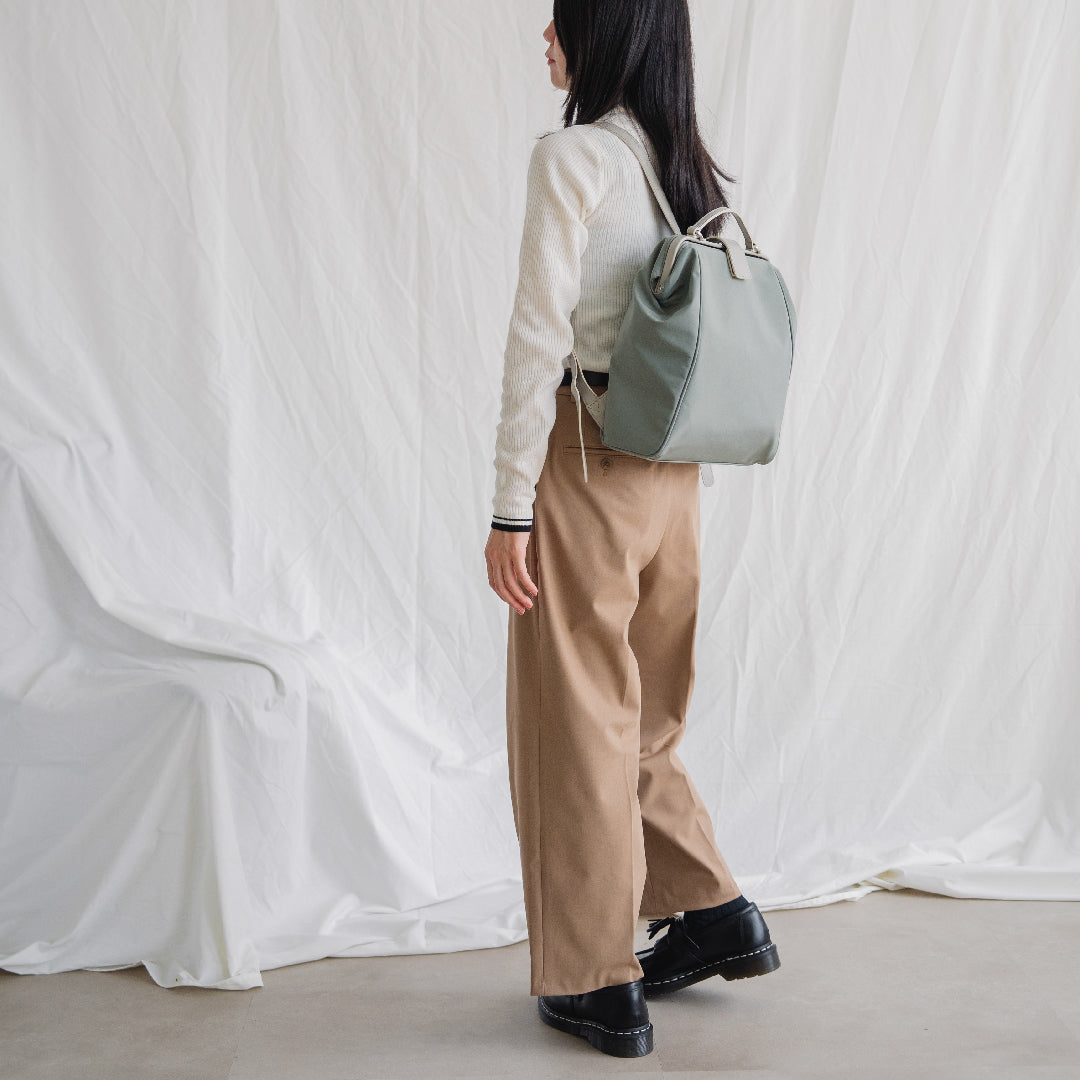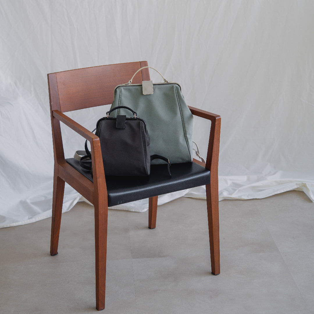 ナイロンの軽やかさと、レザーの凛とした表情。やわらかなフォルムは日常にスッと馴染んでくれます。