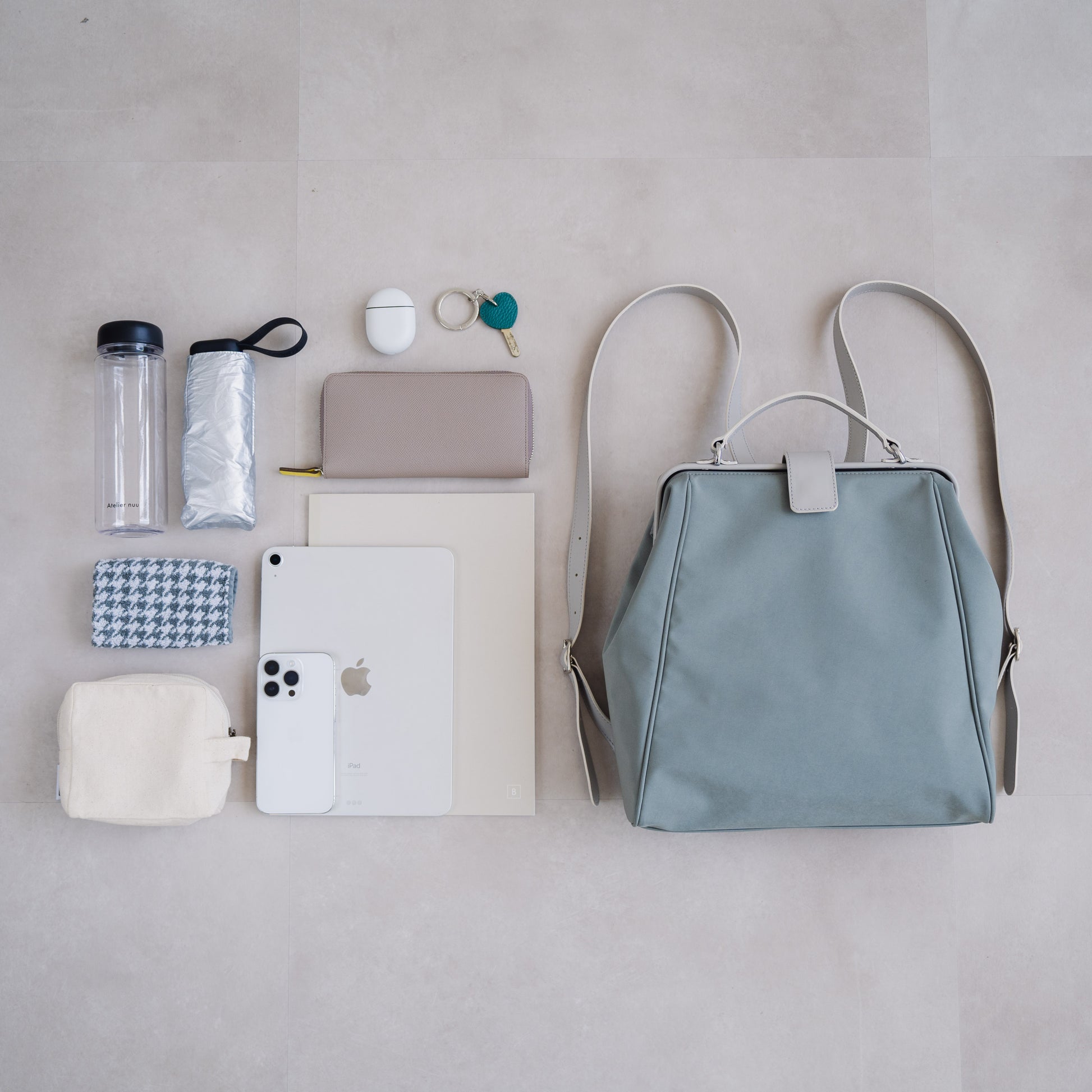 カジュアルにもきれいめにもマッチするデザインは、お出かけなどの日常使いはもちろんA4サイズも入るLサイズは通勤にも◎
