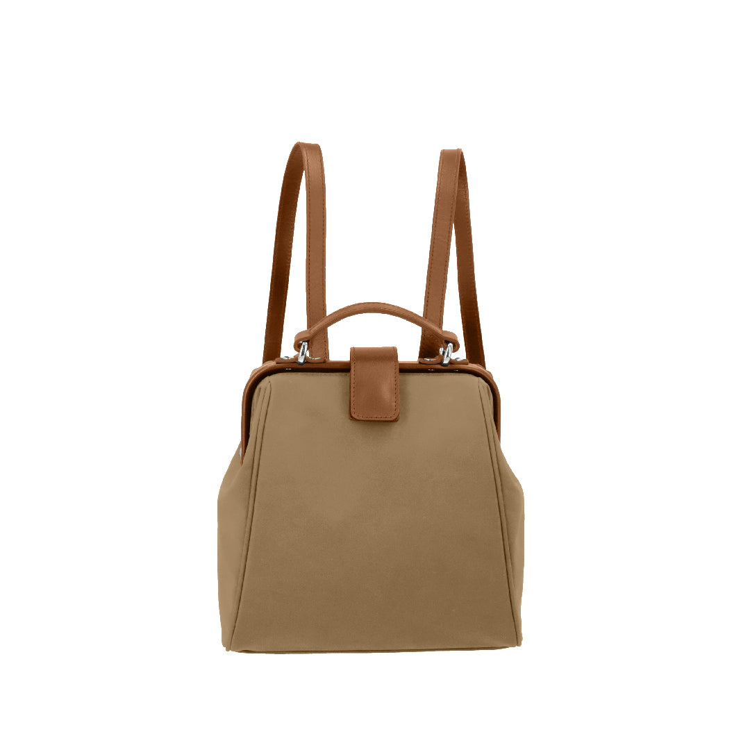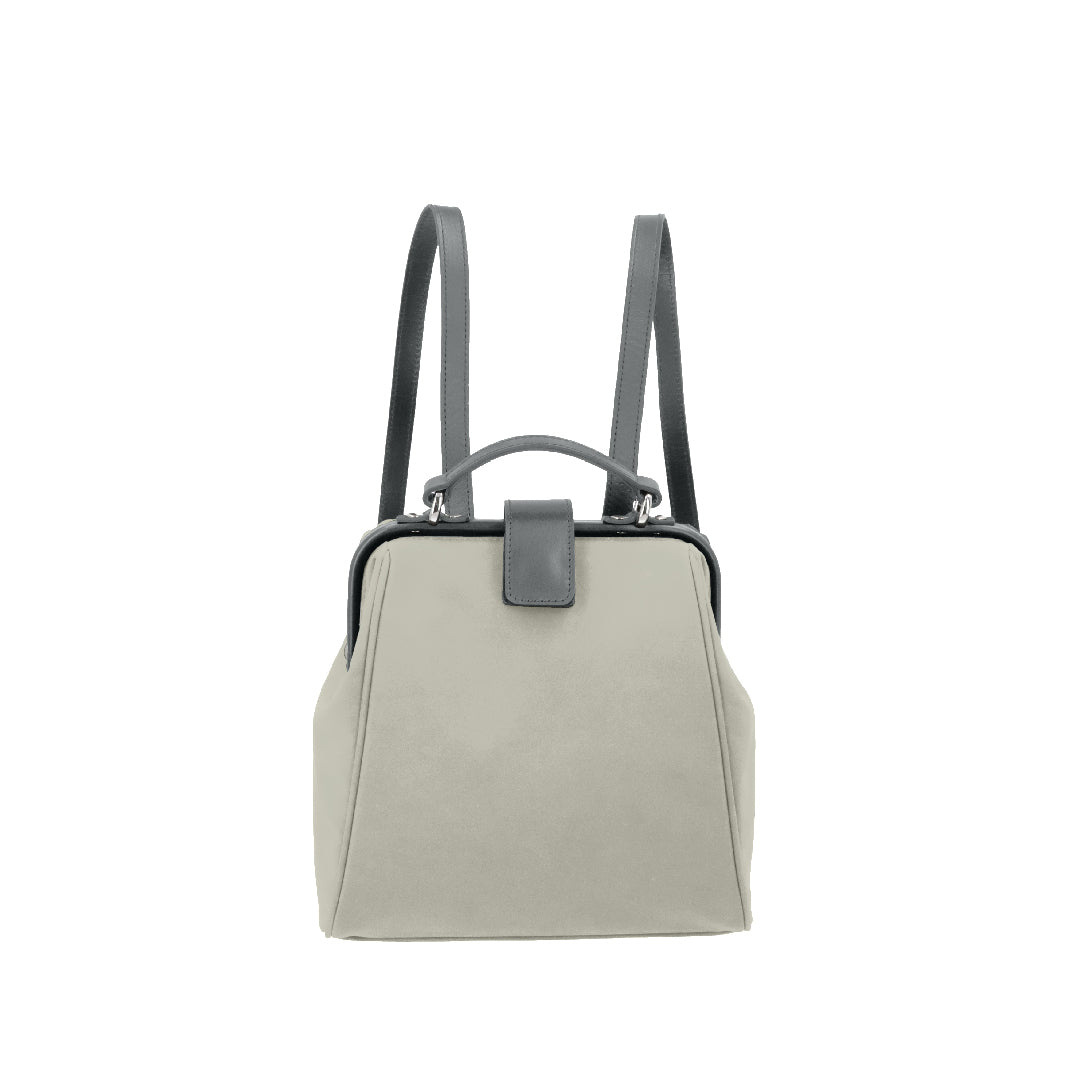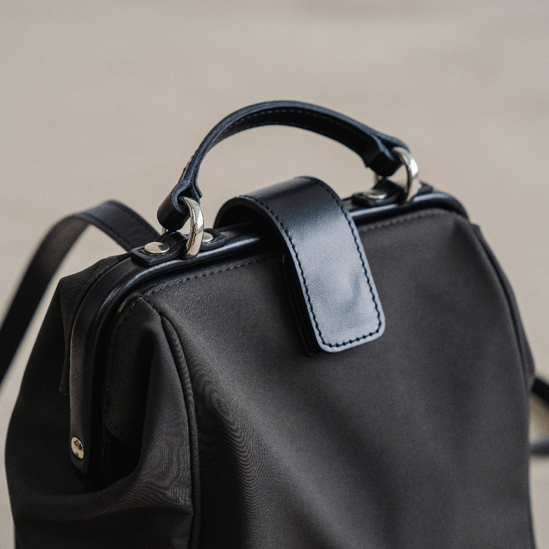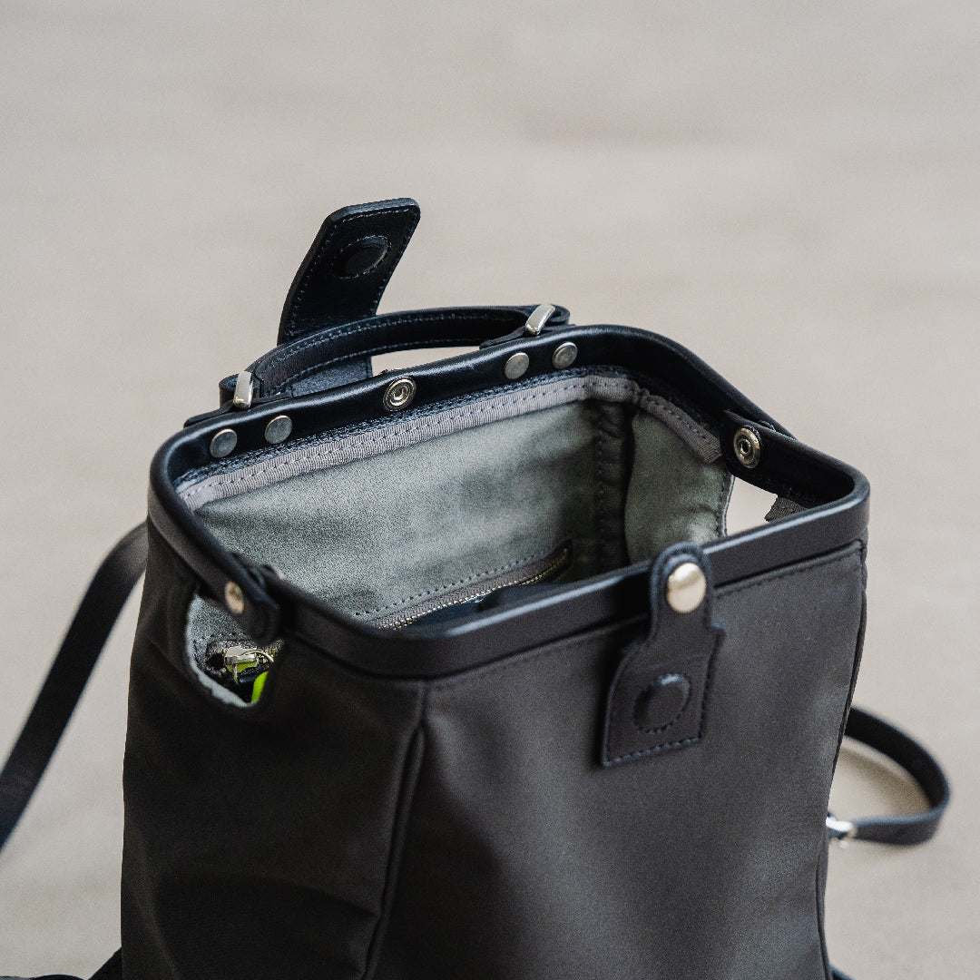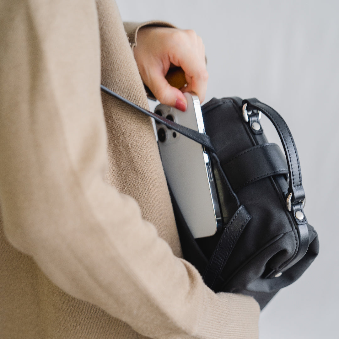 ハリのあるナイロンに、スムースレザーが軽やかさと品格を両立した、大人のための異素材コンビ。